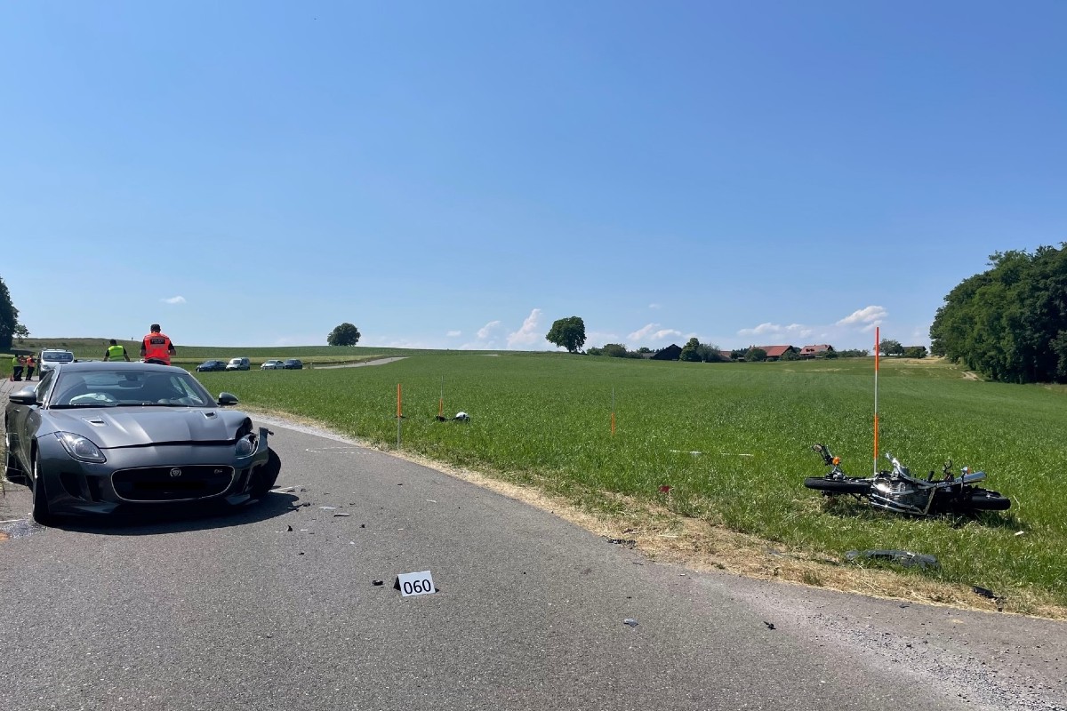Bei einer Kollision zwischen einem Motorradlenker und einem Personenwagen auf der Birchwilerstrasse in Kloten ist am Mittwochnachmittag (07.06.2023) in Kloten der Zweiradlenker schwer verletzt worden. Die Strasse musste gesperrt werden.