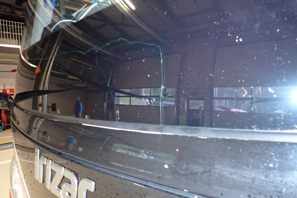 Bei diesem Reisecar war die Frontscheibe beschädigt. (Bildquelle: Kantonspolizei Uri)