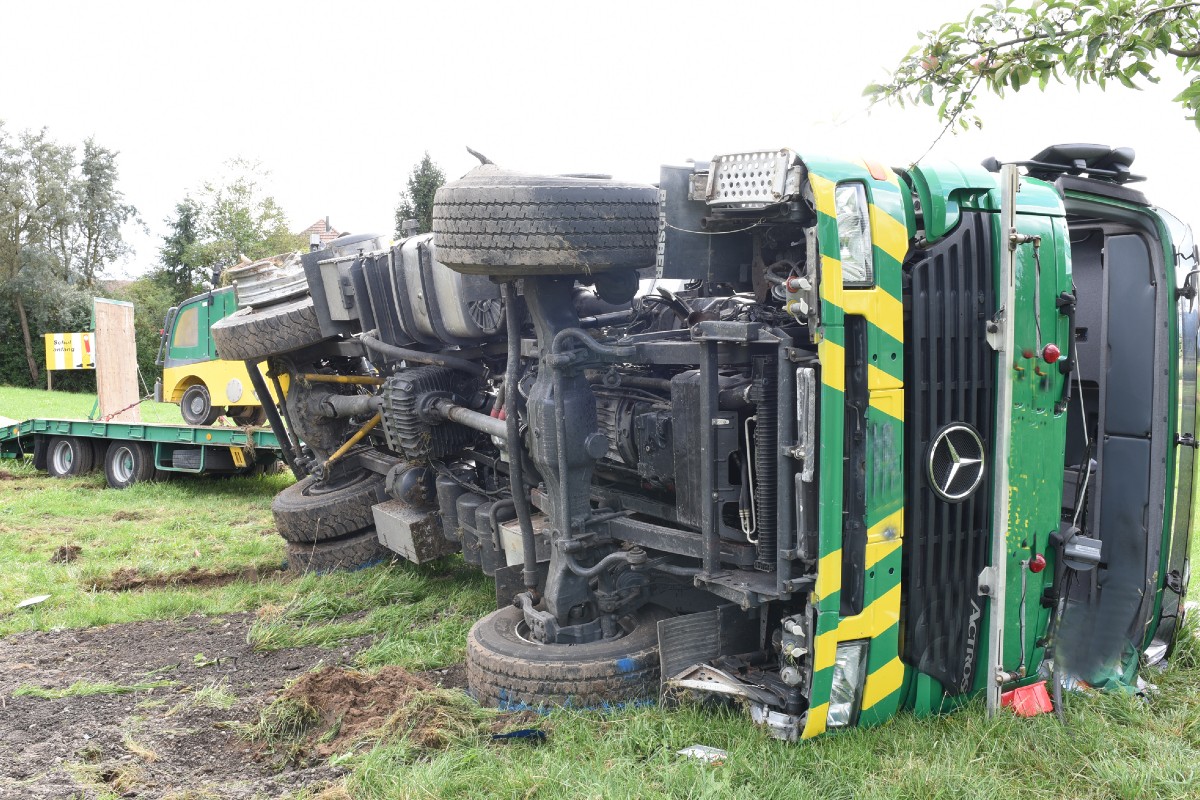 Kottwil LU - Lastwagen kippt - Chauffeur muss vom Rettungshelikopter geborgen werden