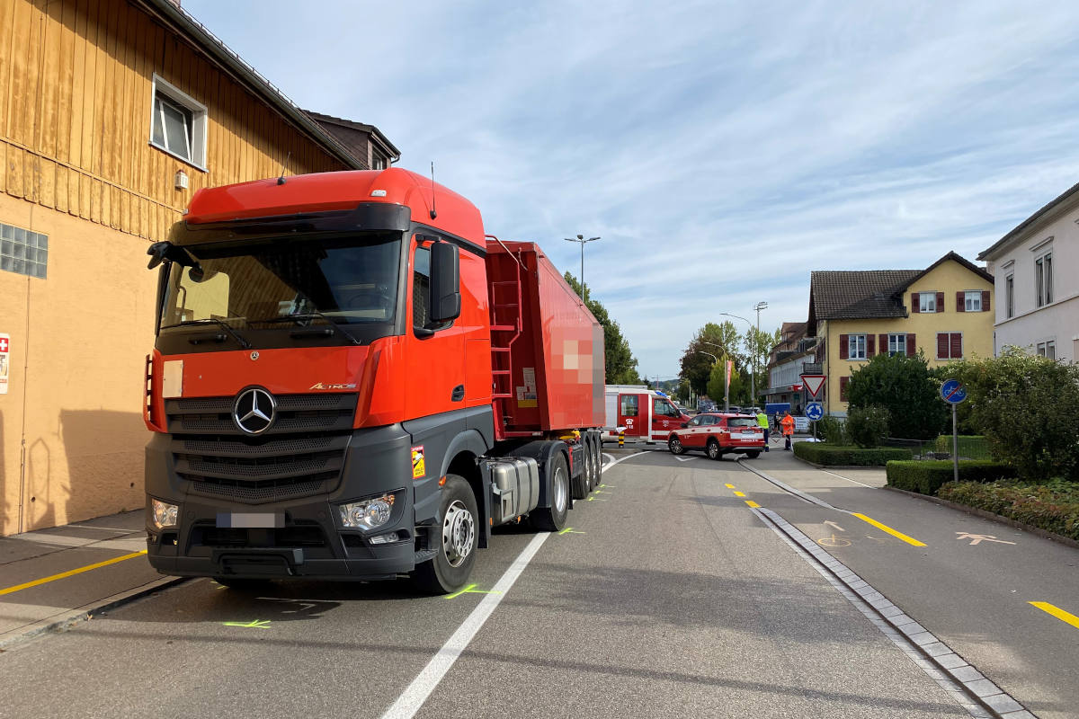 Gegen 15.15 Uhr fuhr ein 59-jähriger Chauffeur mit seinem Sattelmotorfahrzeug auf der Hafenstrasse in Richtung Hauptbahnhof. Bei der Ausfahrt aus dem "Hafenbahnhofkreisel" kam es zu einem Zusammenstoss mit einem Velofahrer, der in gleicher Richtung unterwegs war. Obwohl die Polizei und der Rettungsdienst schnell vor Ort waren, verstarb der 72-jährige Schweizer noch auf der Unfallstelle. Der Chauffeur wurde nicht verletzt.