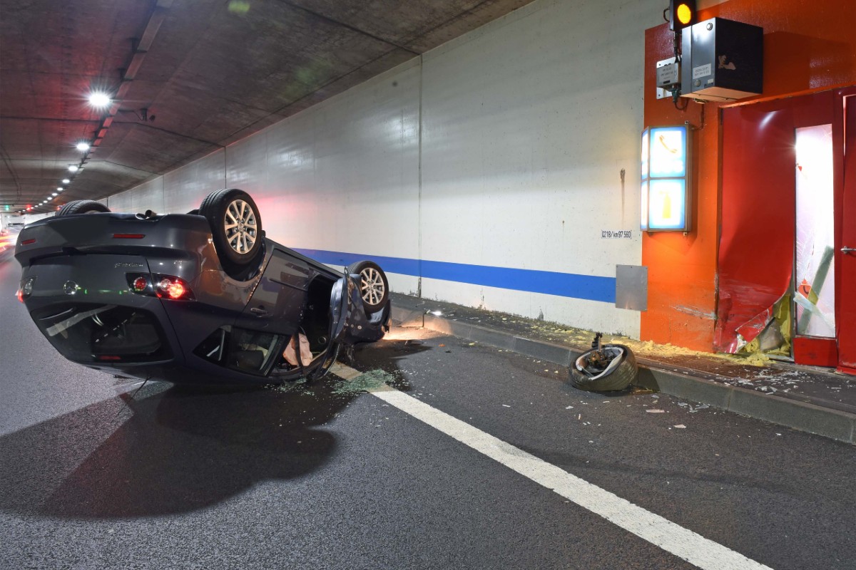 Kriens LU - Auto liegt nach Unfall im Tunnel Schlund auf dem Dach