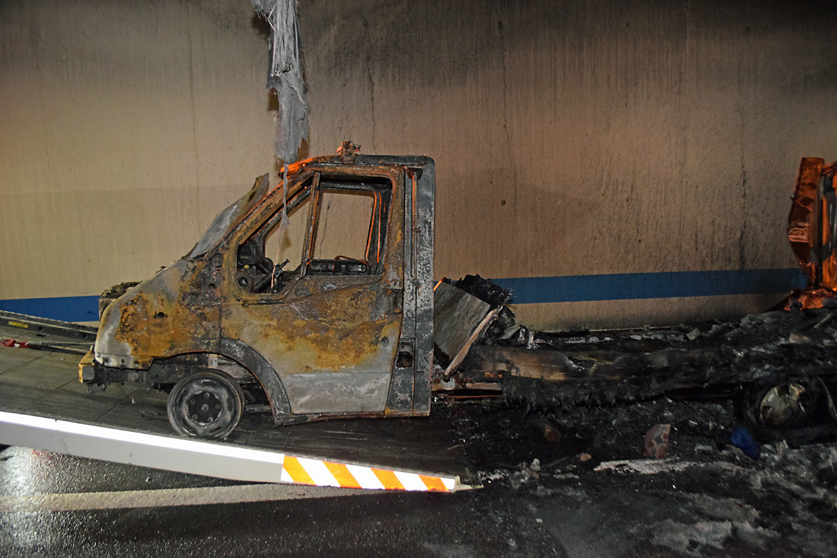 In der Mitte des Tunnels Schlund auf Gemeindegebiet von Kriens wurde ihm von einem anderen Verkehrsteilnehmer mittels Lichthupe ein Problem am Lieferwagen signalisiert. Der Fahrer stoppte den Lieferwagen und stellte fest, wie unter der Motorhaube ein Feuer flackerte sowie schwarzer Rauch aufstieg.