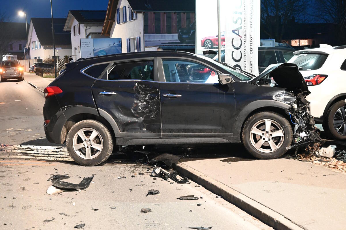 Am Freitagabend ist es in Kriessern zu einer heftigen Frontalkollision zwischen zwei Autos gekommen. Durch den Aufprall wurden die Fahrzeuge in mehrere parkierte Autos geschleudert, zudem wurde eine Scheune beschädigt. Ein Mann wurde verletzt.