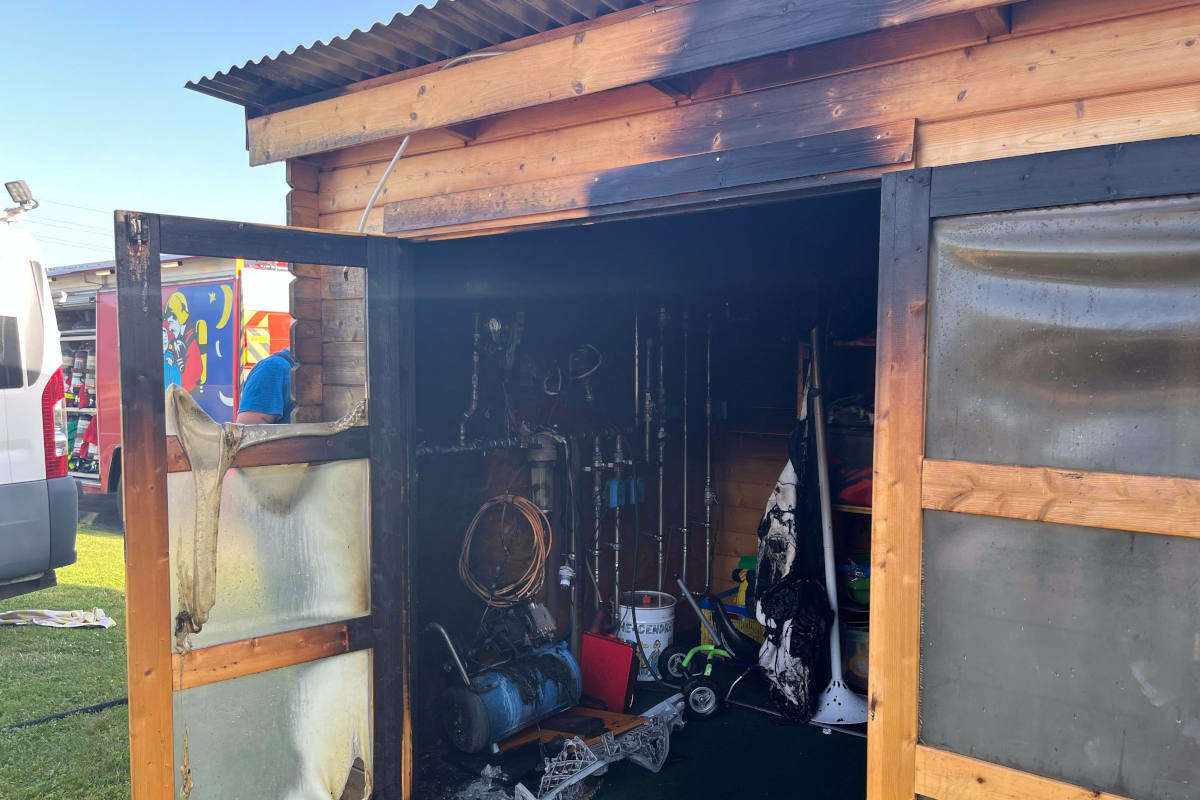 Kompressor im Gartenhaus fängt Feuer in Kriessern (Bildquelle: Kantonspolizei St. Gallen)