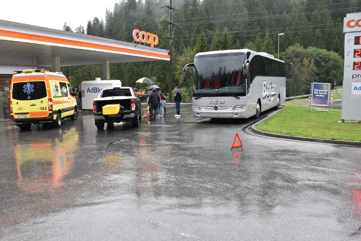 Die 63-jährige thailändische Touristin stieg kurz nach 10 Uhr auf einem Tankstellenareal aus einem Reisebus aus. Dabei wurde sie von einem in Richtung der Tanksäulen fahrenden Auto eines 54-Jährigen erfasst. Sie fiel zu Boden und zog sich dabei Kopfverletzungen zu.