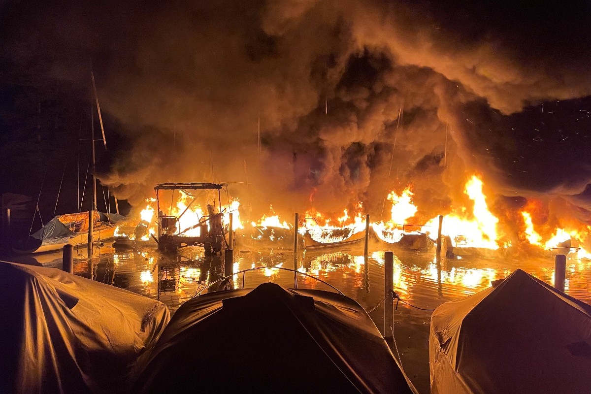 In der Nacht von Sonntag auf Montag, 30. August 2021 hat ein Grossbrand im Segelhafen Spreitenbach in Lachen zehn Schiffe zerstört und mehrere Boote beschädigt.