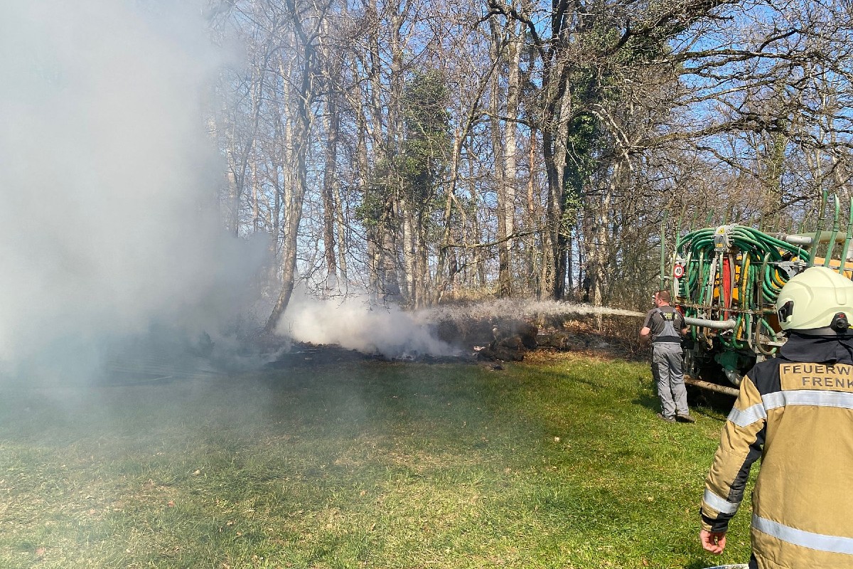 Die entsprechende Meldung, wonach ein Brennholzstapel am Waldrand, in der Nähe des Hofes