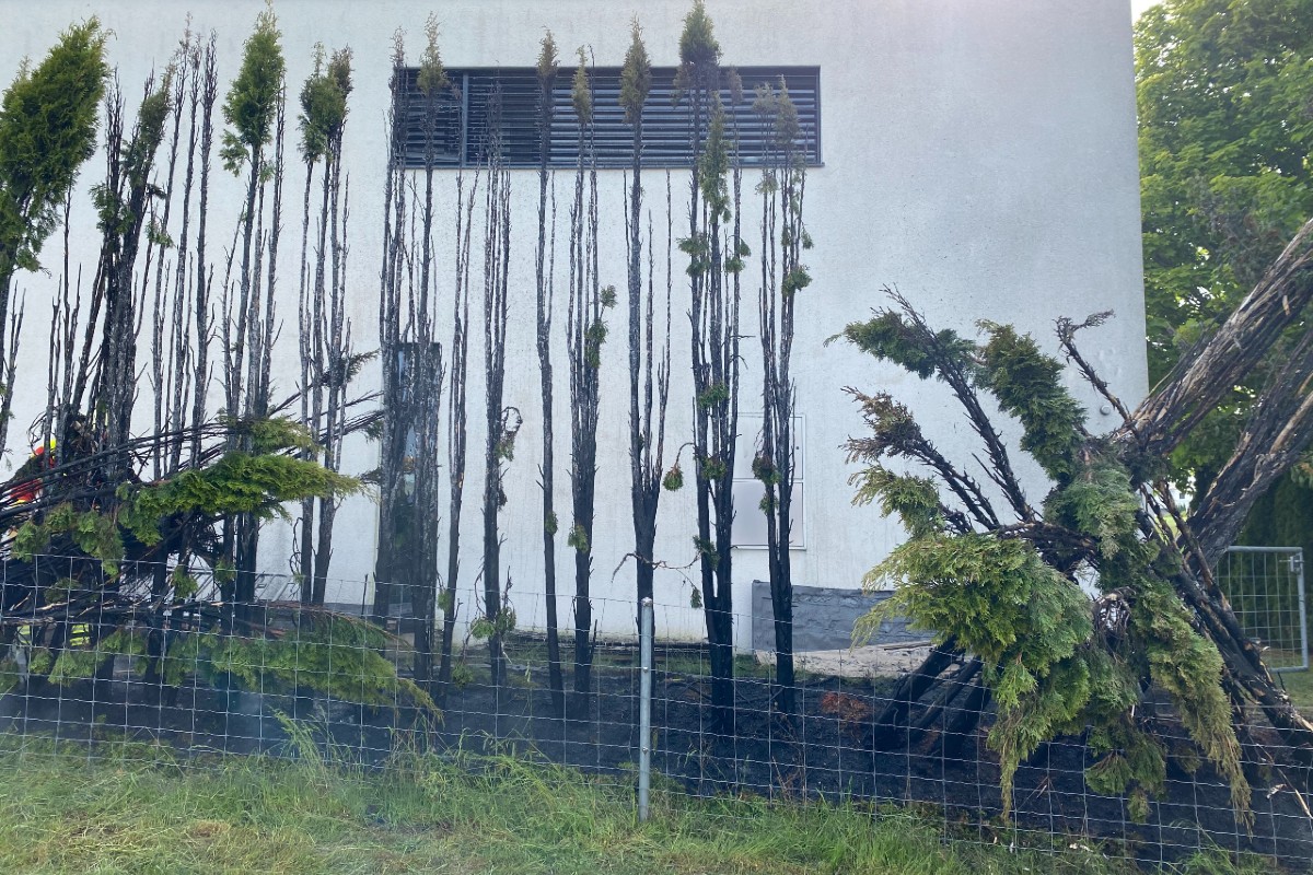 Bei Abflammarbeiten ist gestern in Langrickenbach TG eine Hecke in Brand geraten. (Bildquelle: Kantonspolizei Thurgau)