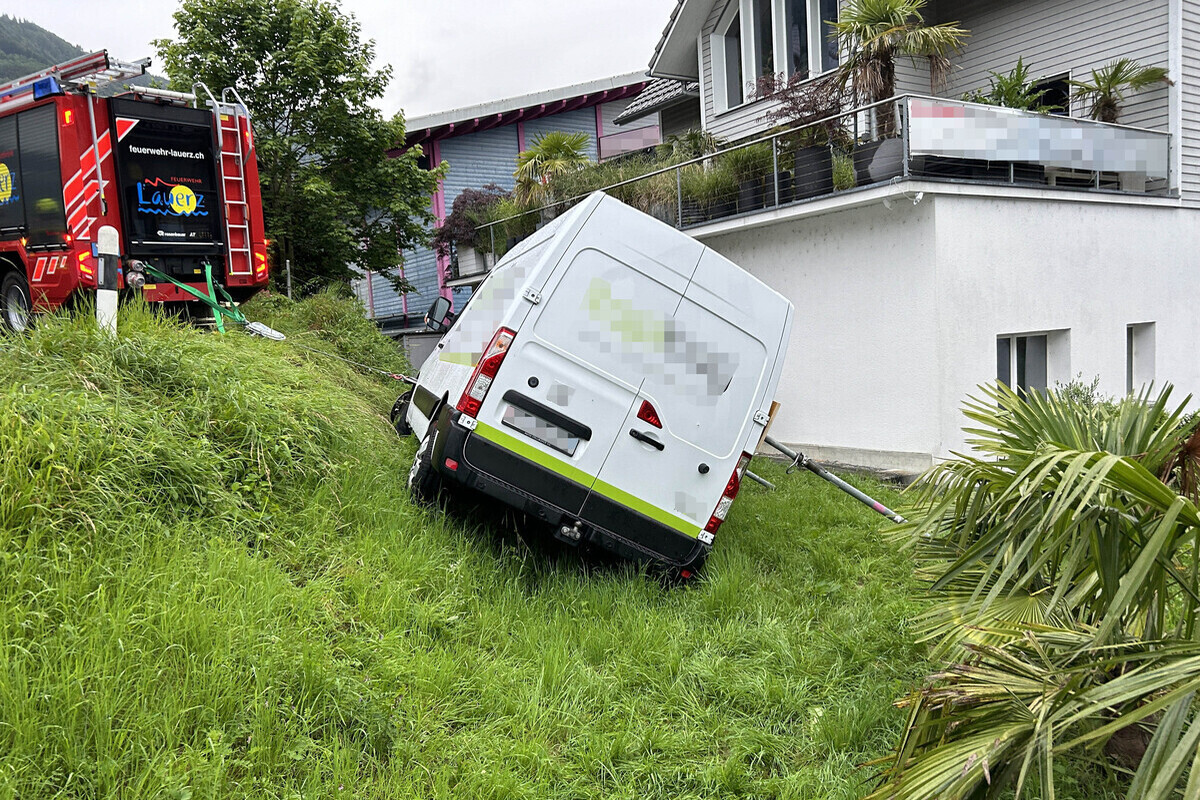 Die durch Dritte alarmierte Feuerwehr Lauerz konnte den in einer Schräglage stehenden Lieferwagen sichern. Für die Bergung des Fahrzeuges wurden zwei private Abschleppdienste aufgeboten.
