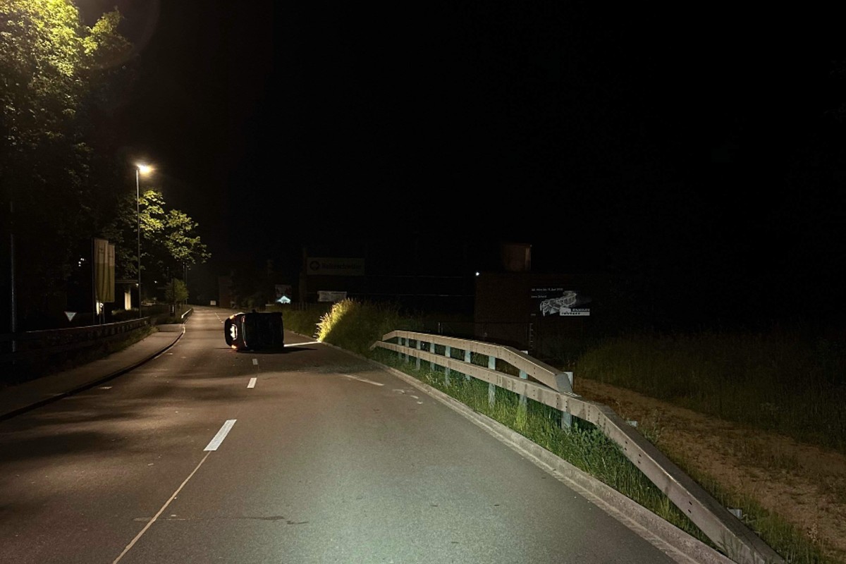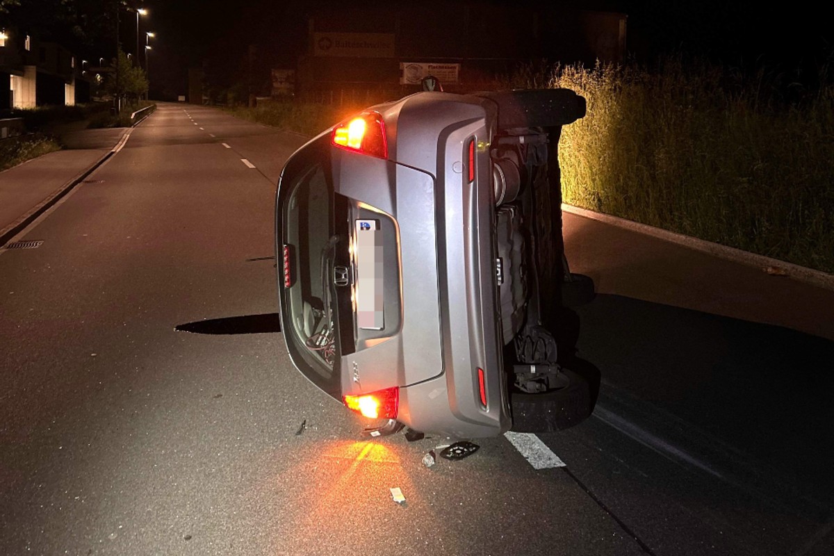 In der Nacht auf Freitag nickte ein Automobilist in Lauenburg am Steuer ein und verunfallte. Sein Wagen blieb auf der Seite liegen. Verletzt wurde niemand.