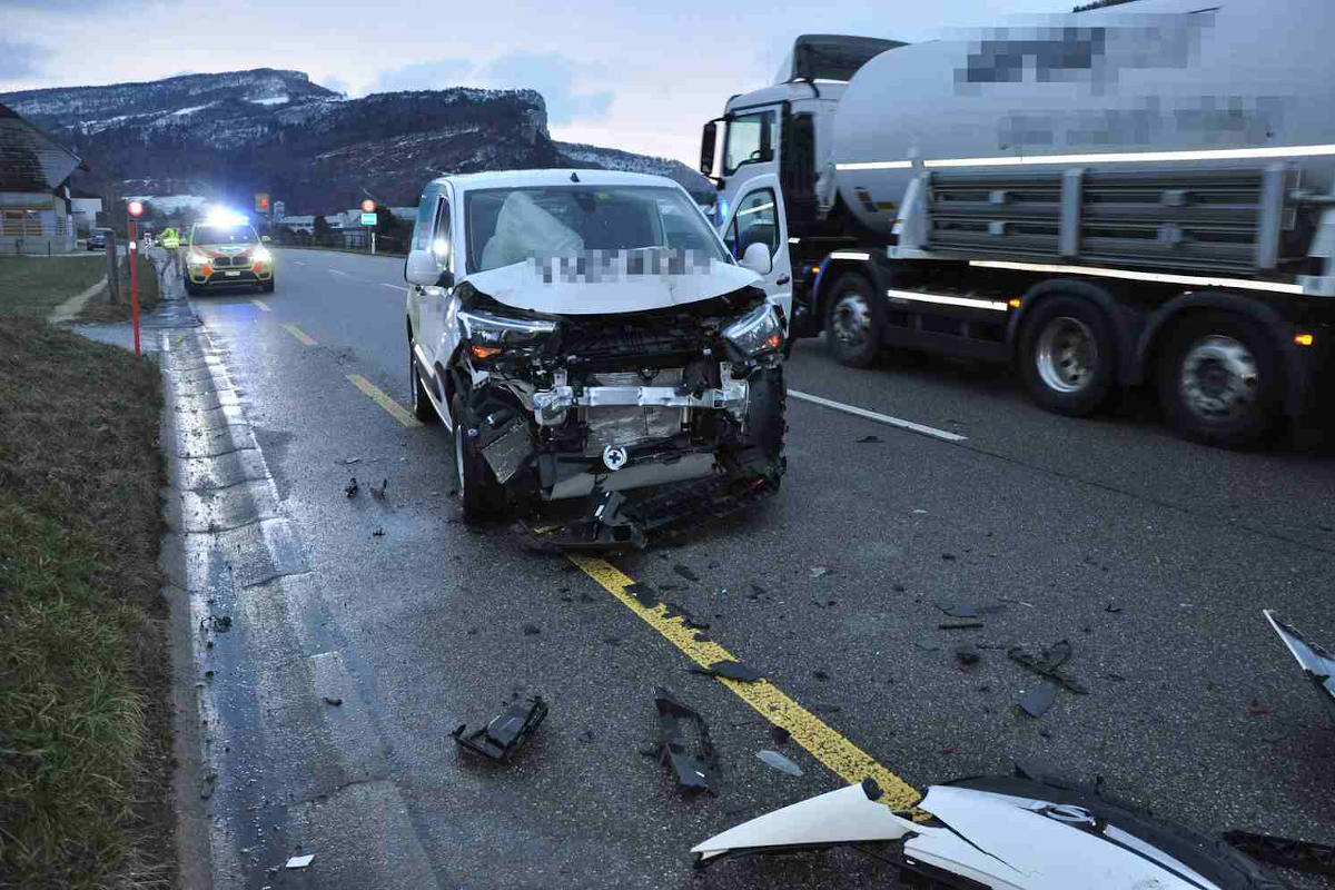 Am Mittwoch, 13. Januar 2021, kurz nach 8 Uhr, kam es auf der Thalstrasse zwischen Balsthal und Laupersdorf zu einer heftigen Auffahrkollision zwischen zwei Klein-Lieferwagen. Eine in Richtung Laupersdorf fahrende Lenkerin wollte von der Hauptstrasse nach links in den Längenmoosweg abbiegen und hielt wegen des Gegenverkehrs an. Ein nachfolgender Autolenker bemerkte dies zu spät und kollidierte mit dem Heck des stehenden Lieferwagens.