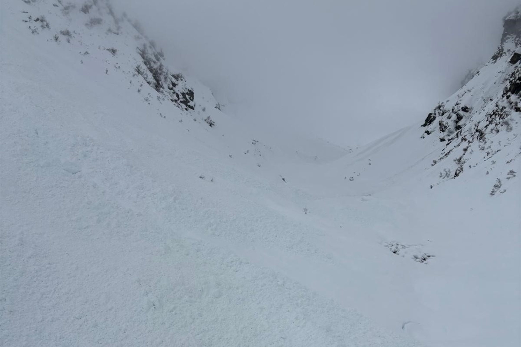 Die Lawine erreichte den Talboden und erfasste die Männer. Ein Alpinist wurde ganz, ein Kamerad teilweise verschüttet und der dritte Mann blieb unverletzt.