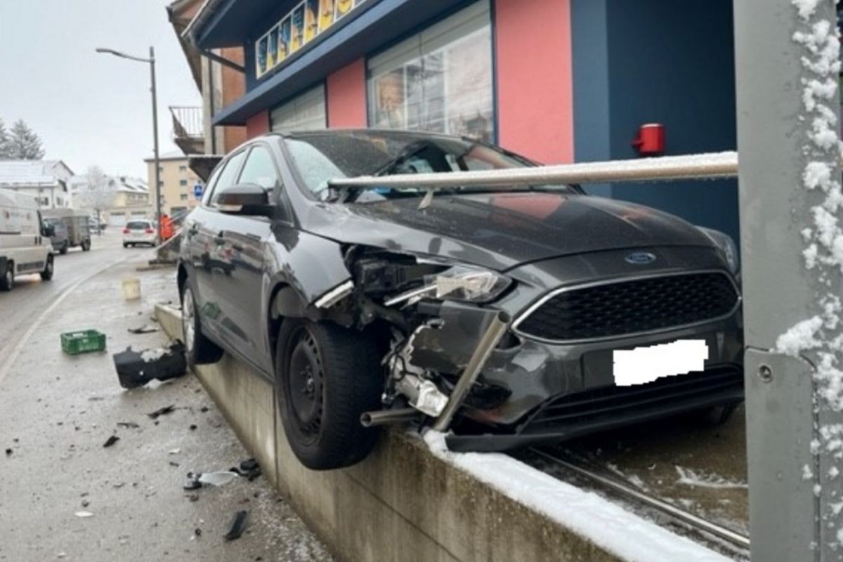 Le Noirmont JU – Auto landet bei Unfall auf Zugangsrampe eines Kinos
