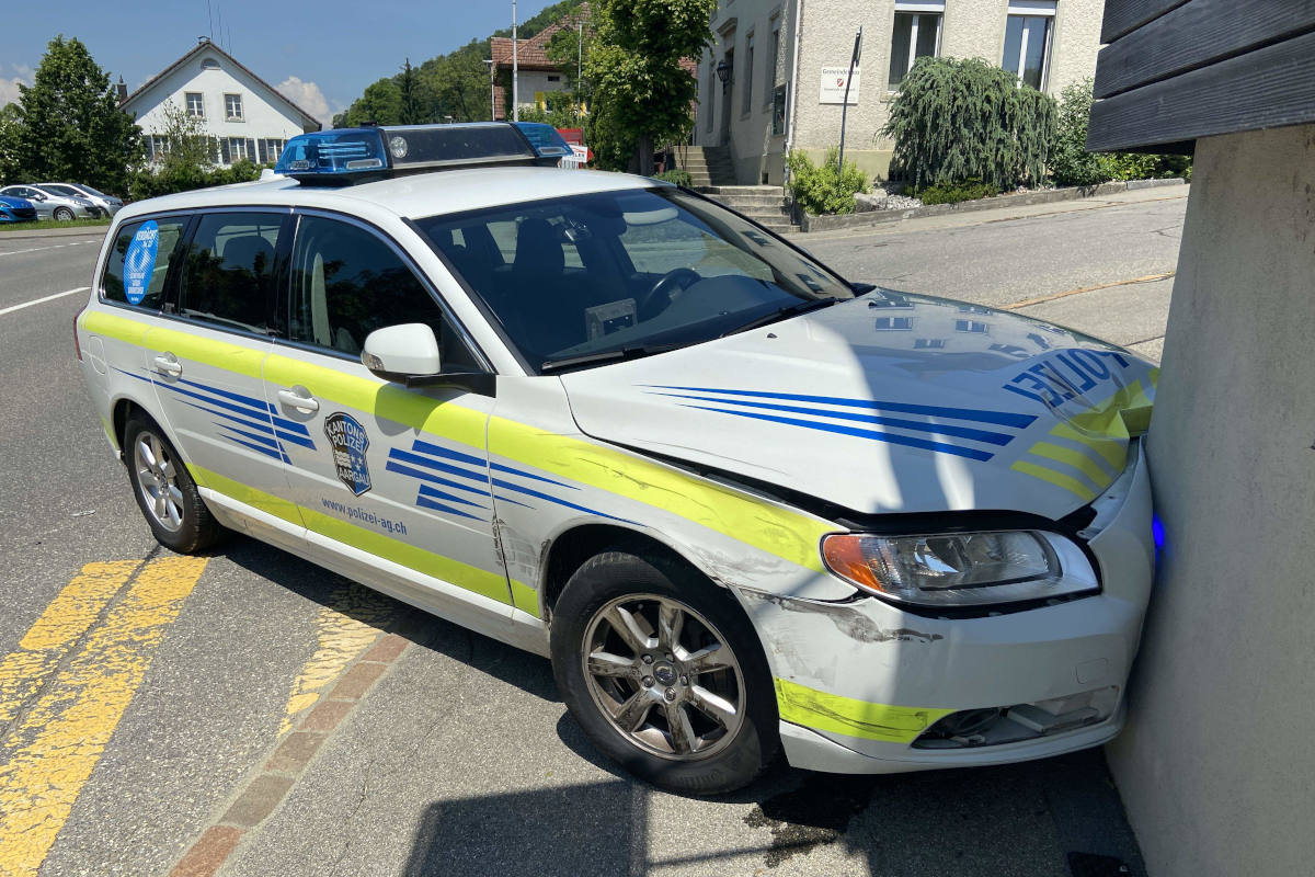 Der Unfall ereignete sich am Donnerstag, 10. Juni 2021, kurz vor 12.30 Uhr, in Leimbach. Ein Patrouillenwagen fuhr mit eingeschaltetem Blaulicht und Horn auf der Hauptstrasse von Zetzwil in Richtung Reinach. Dabei kam es, anlässlich eines Überholmanövers, aus noch unbekannten Gründen, zu einer Streifkollision. Aufgrund eines umgehend eingeleiteten Brems- und Ausweichmanövers prallte der Patrouillenwagen anschliessend in eine Hausmauer.