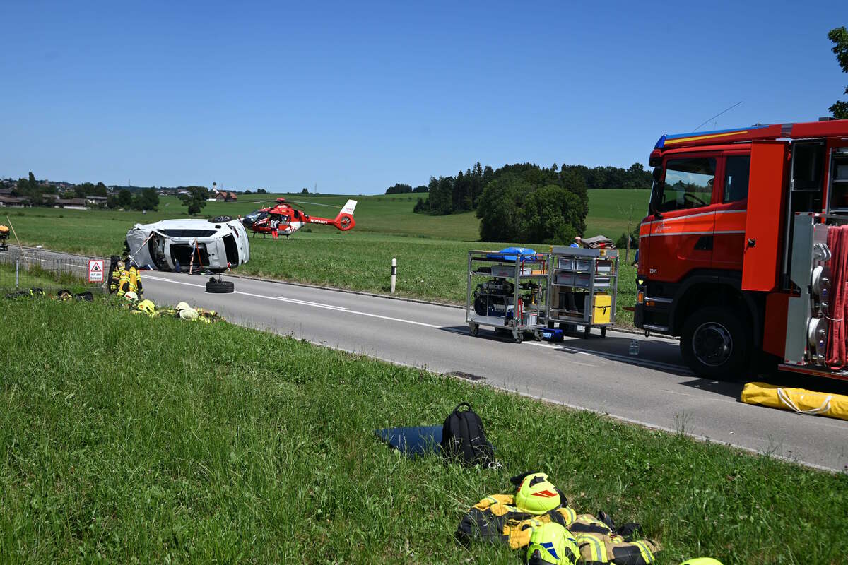 Am Samstag (15.07.2023), um 14:10 Uhr, kam es auf der Taa-Strasse mutmasslich während eines Überholmanövers zu einer seitlichen Kollision zwischen zwei Autos. Dabei überschlug sich das Auto eines 37-jährigen Autofahrers mehrmals und kam auf der Seite liegend zum Stillstand. Der 37-Jährige wurde durch den Unfall schwer verletzt und musste von der deutschen Rettungsflugwacht ins Spital geflogen werden.