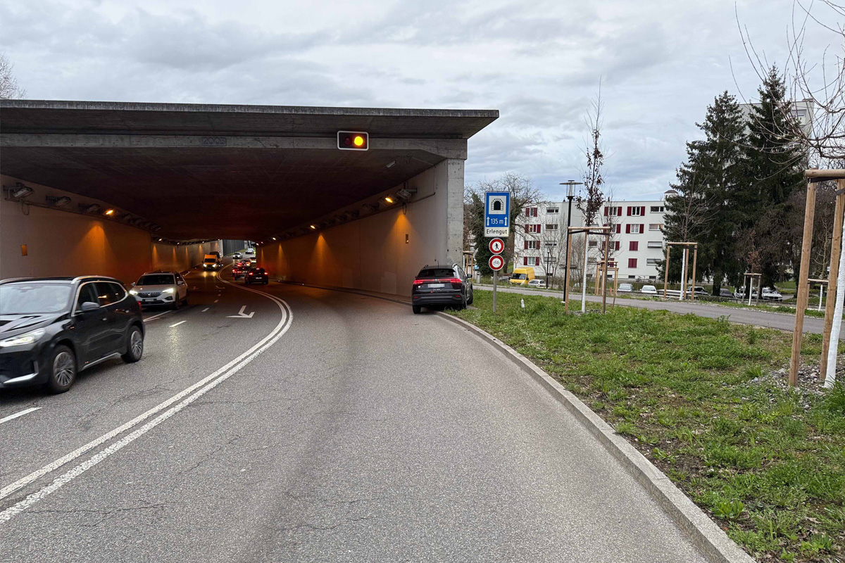 Kurz vor der Einfahrt in den Erlenguttunnel geriet er neben die Fahrbahn und prallte frontal gegen die Tunnelwand.