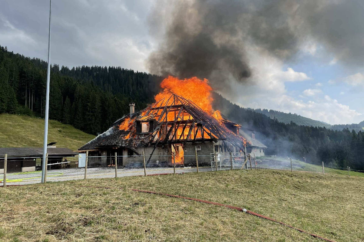 Am Samstag, 23. Juli 2022, um 17:35 Uhr, wurde die Polizei über einen Brand in der Alphütte "Les Pueys" in Les Paccots (Gemeinde Châtel-St-Denis) informiert. Beim Eintreffen der Rettungskräfte stand der bewohnbare Teil in Flammen. Die anwesenden Personen sowie das Vieh konnten rechtzeitig in Sicherheit gebracht werden. Eine verletzte Person (Verbrennungen) wurde mit dem Helikopter in ein Spital geflogen. Eine zweite Person wurde von den Rettungssanitätern vor Ort konsultiert, aber nicht hospitalisiert.