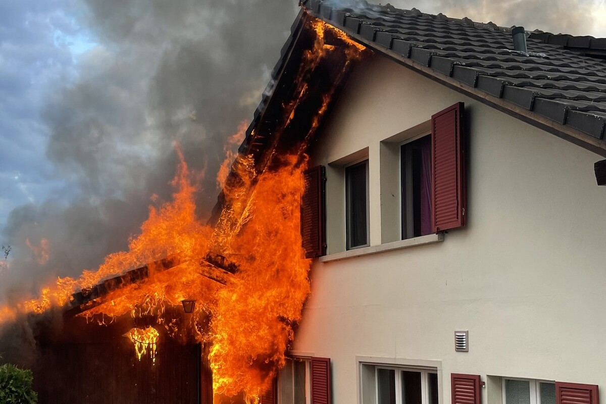 Gestern brannte in Leutwil ein Schopf mit Garage. Das Feuer griff dann auf das angrenzende Dach des Einfamilienhauses über. Es entstand grosser Sachschaden.