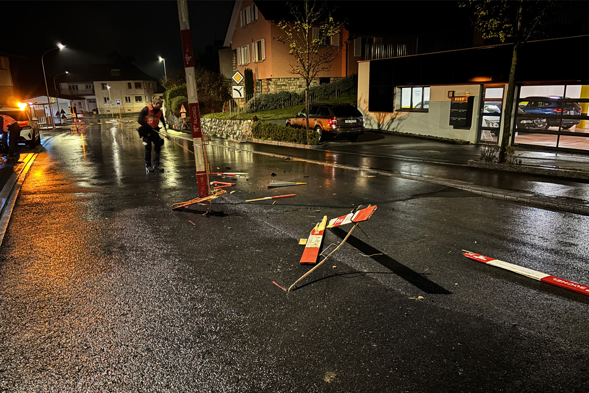 In der Nacht auf Sonntag wurde eine Baustellenschrankung auf der Fallsgasse in Eschen durch ein unbekanntes Fahrzeug beschädigt. Der dunkle Personenwagen dürfte an der Front stark beschädigt sein.