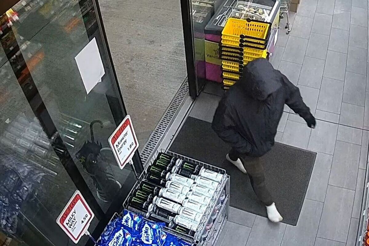 Der Täter war männlich, trug eine schwarze Jacke, eine dunkle Stoffhose und keine Schuhe (nur weisse Socken). Er sprach Hochdeutsch mit osteuropäischem Akzent.