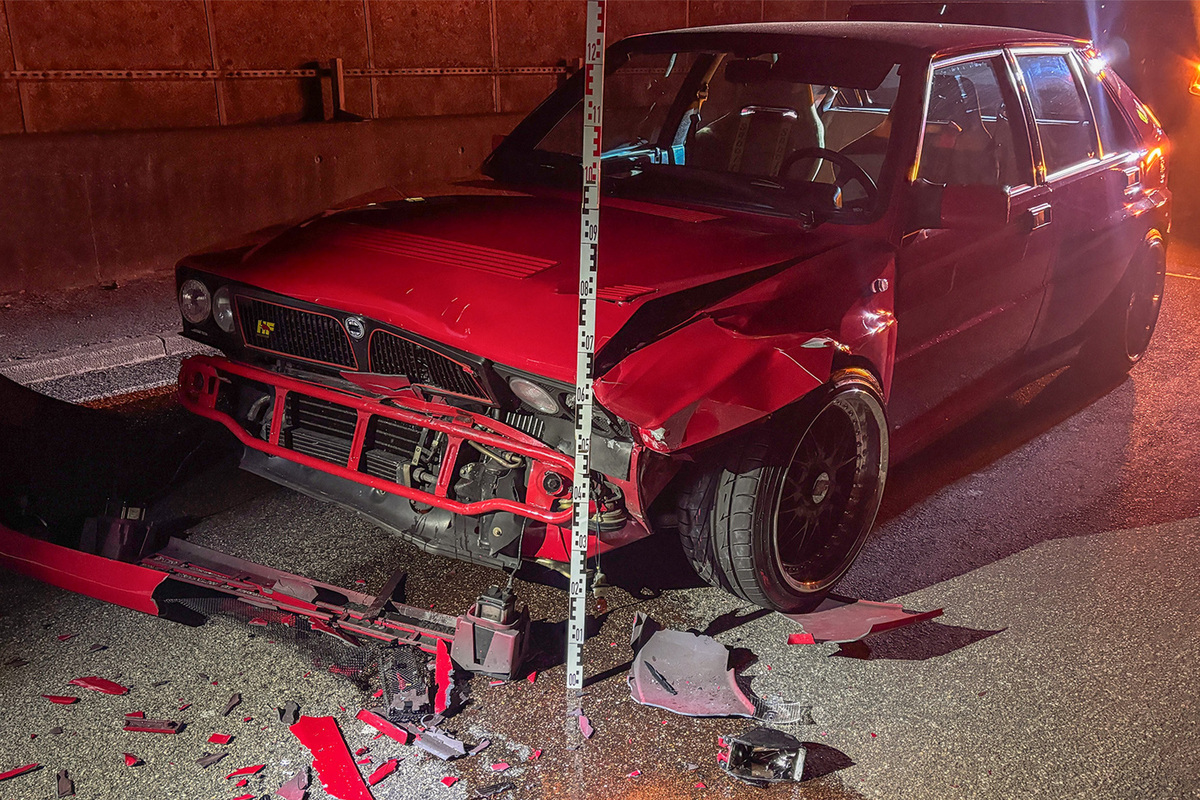 In der Folge kollidierte der Falschfahrer frontal seitlich mit einem korrekt entgegenkommenden roten Lancia eines 57-jährigen Lenkers.