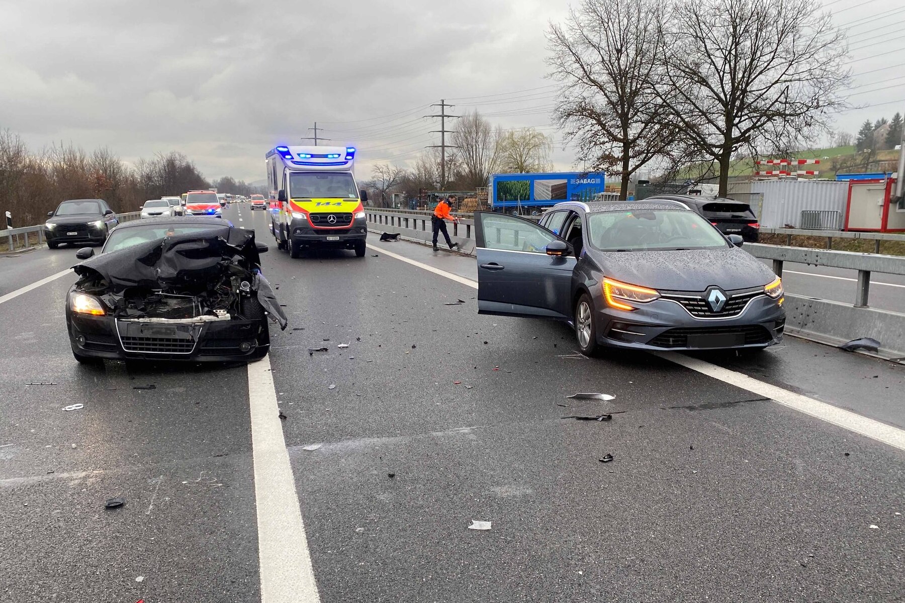 Etwas mehr als zwei Stunden später, kurz vor 14:45 Uhr, ereignete sich auf der A14 bei Gisikon, ein Auffahrunfall mit zwei beteiligten Autos.