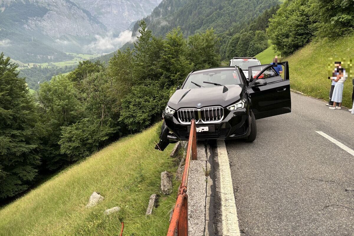 Am Samstagabend, 21. Juni 2025, kam es auf der Klausenpassstrasse oberhalb des Restaurants Bergli in Linthal zu einem Selbstunfall. Ein Personenwagen kam von der Strasse ab und geriet auf eine Stützmauer. Zwei Personen wurden leicht verletzt, es entstand erheblicher Sachschaden.