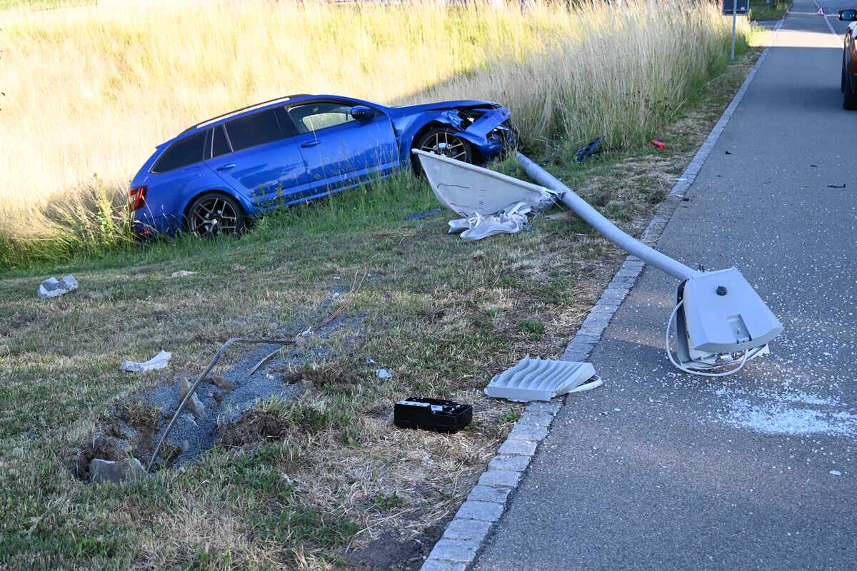 Ein 32-jähriger Autofahrer fuhr mit einer 27-jährigen Beifahrerin auf der Muolerstrasse von Amriswil in Richtung Wittenbach. In der Rechtskurve geriet das Auto nach links, überquerte die Gegenfahrbahn sowie den Gehsteig. Anschliessend prallte es in den Randstein eines Parkplatzes und daraufhin in einen Kandelaber. Schliesslich kam das Auto nach rund zehn weiteren Metern im angrenzenden Wiesland zum Stillstand.
