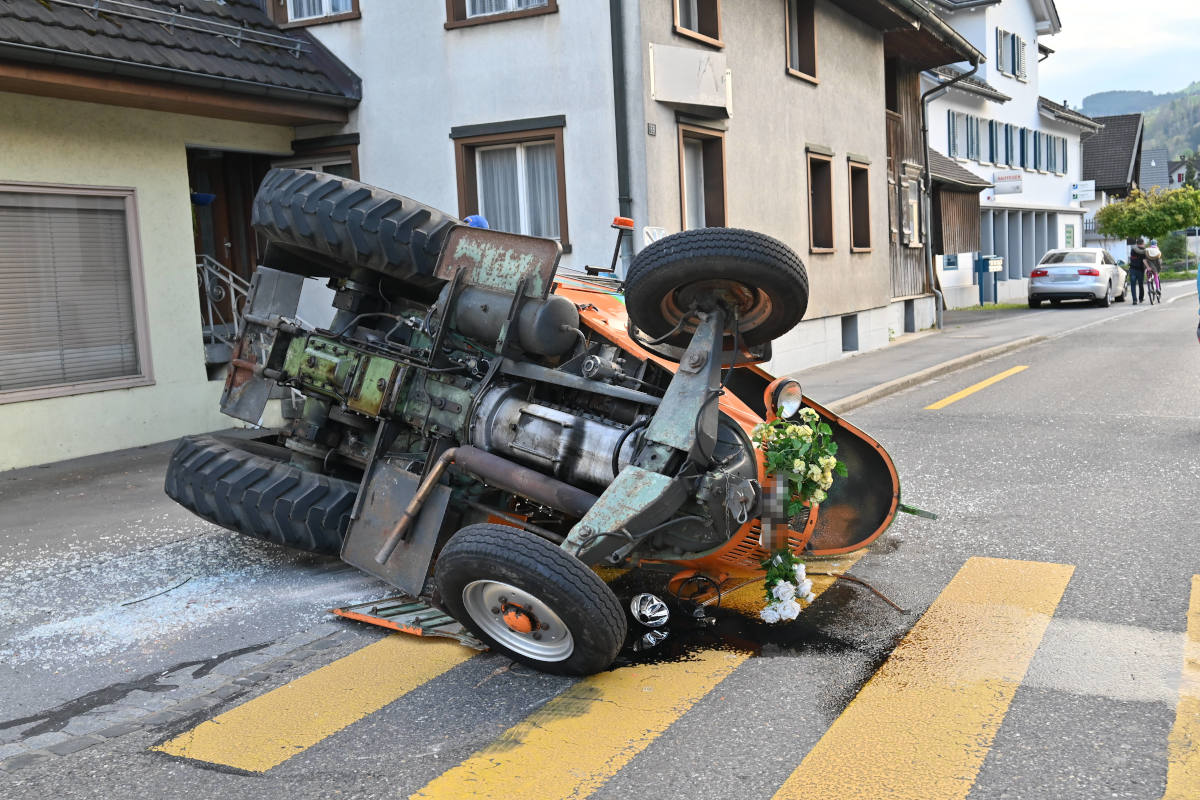 Am Samstag (16.04.2022), um 18:20 Uhr, ist es auf der Rorschacherstrasse zu einem Verkehrsunfall zwischen einem Auto und einem Traktor gekommen. Der Traktor kippte zur Seite. Zwei Mädchen und zwei Erwachsene wurden leicht verletzt.