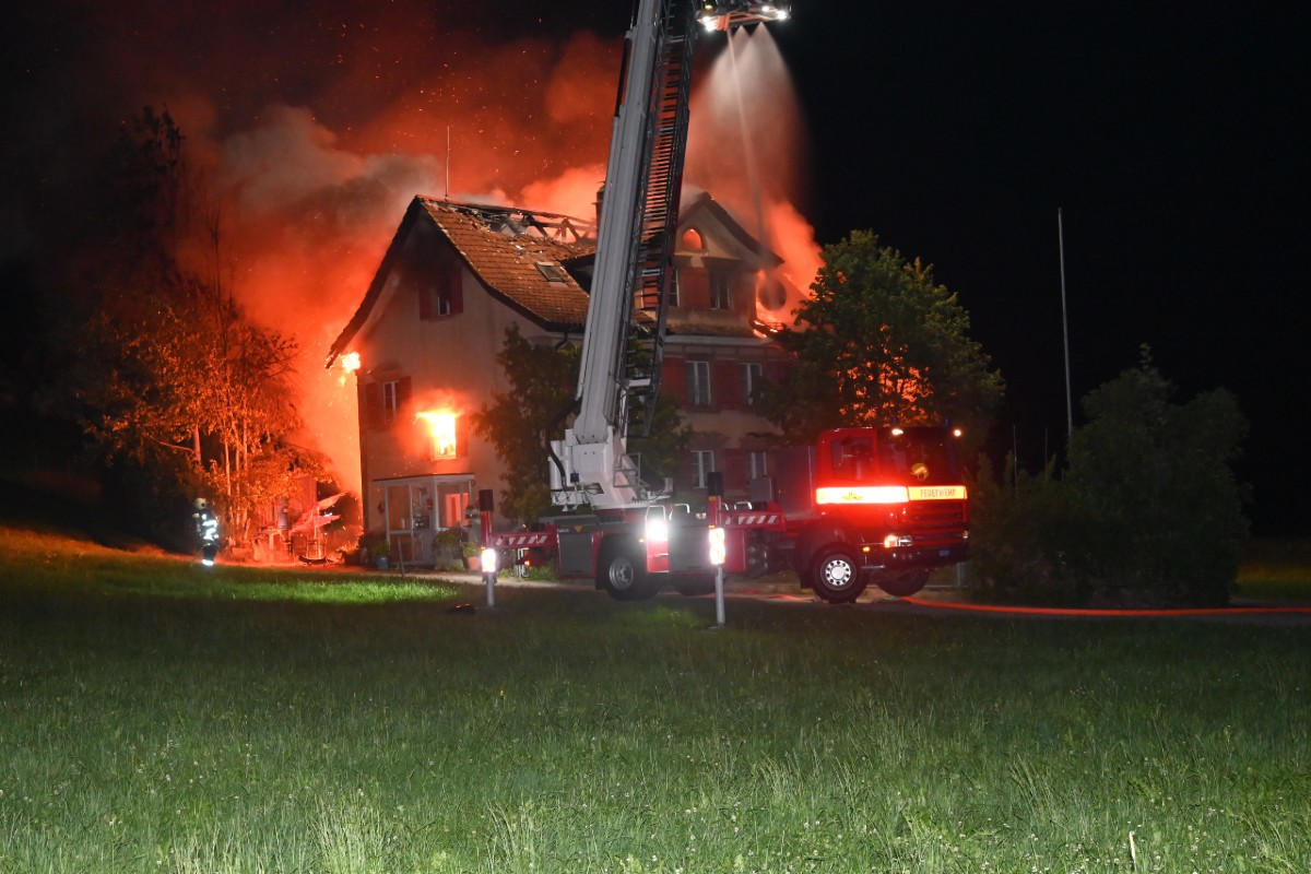 Die zuständigen Feuerwehren rückten mit rund 50 Angehörigen und zehn Fahrzeugen aus. Sie konnten jedoch nicht mehr verhindern, dass das Haus und ein Schopf ein Raub der Flammen wurden.