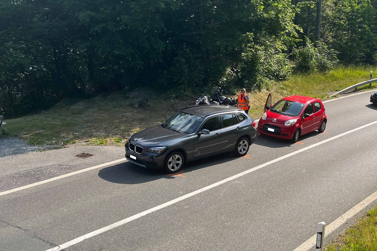 Ein 25-jähriger Tourist fuhr in Richtung Brünigpass und bemerkte zu spät, dass die vor ihm fahrende Autolenkerin die Strasse nach rechts verlassen wollte. Es kam zur Auffahrkollision. Gleichzeitig fuhr ein 25-jähriger Motorradfahrer hinter den beiden Autos und bemerkte die Kollision zu spät.