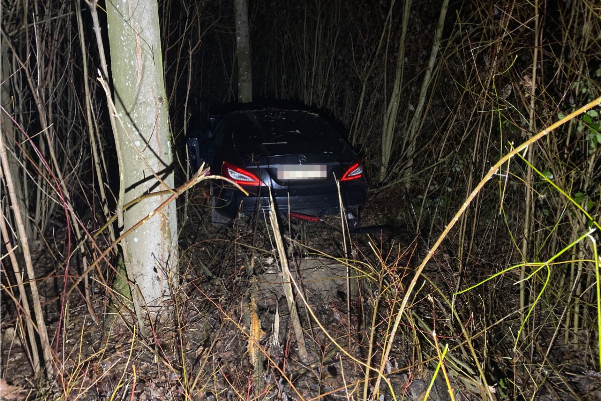 Mit dem Mercedes in Luterbach SO verufnallt. (Bildquelle: Polizei Kanton Solothurn)
