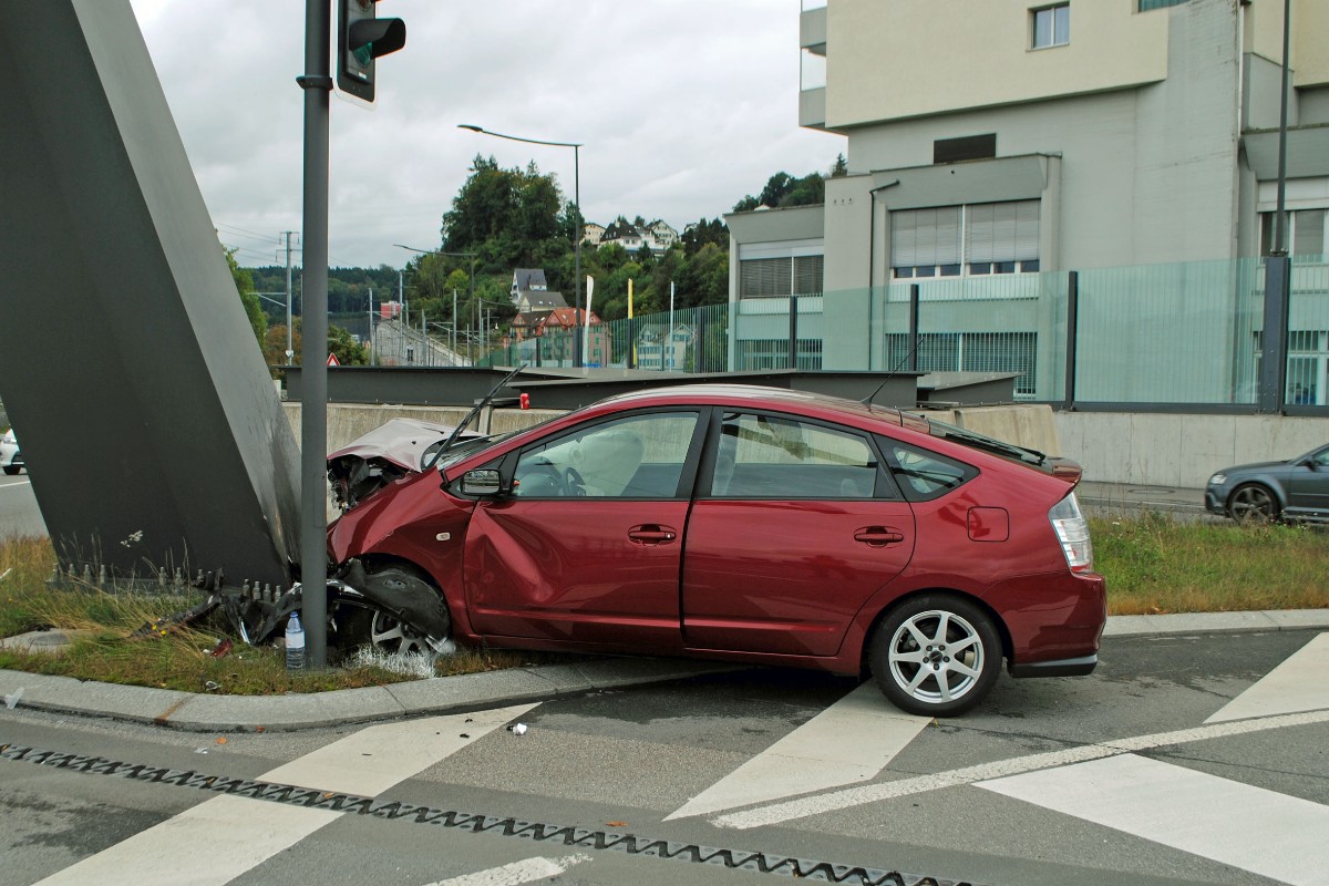 Luzern - Totalschaden nach heftiger Kollision mit der Stütze einer Lichtsignalanlage