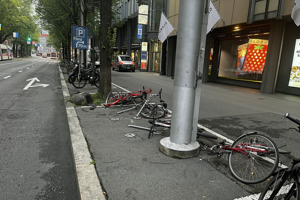 Stadt Luzern: Unbekannter Audifahrer prallt gegen Veloparkplatz – Polizei sucht Zeugen