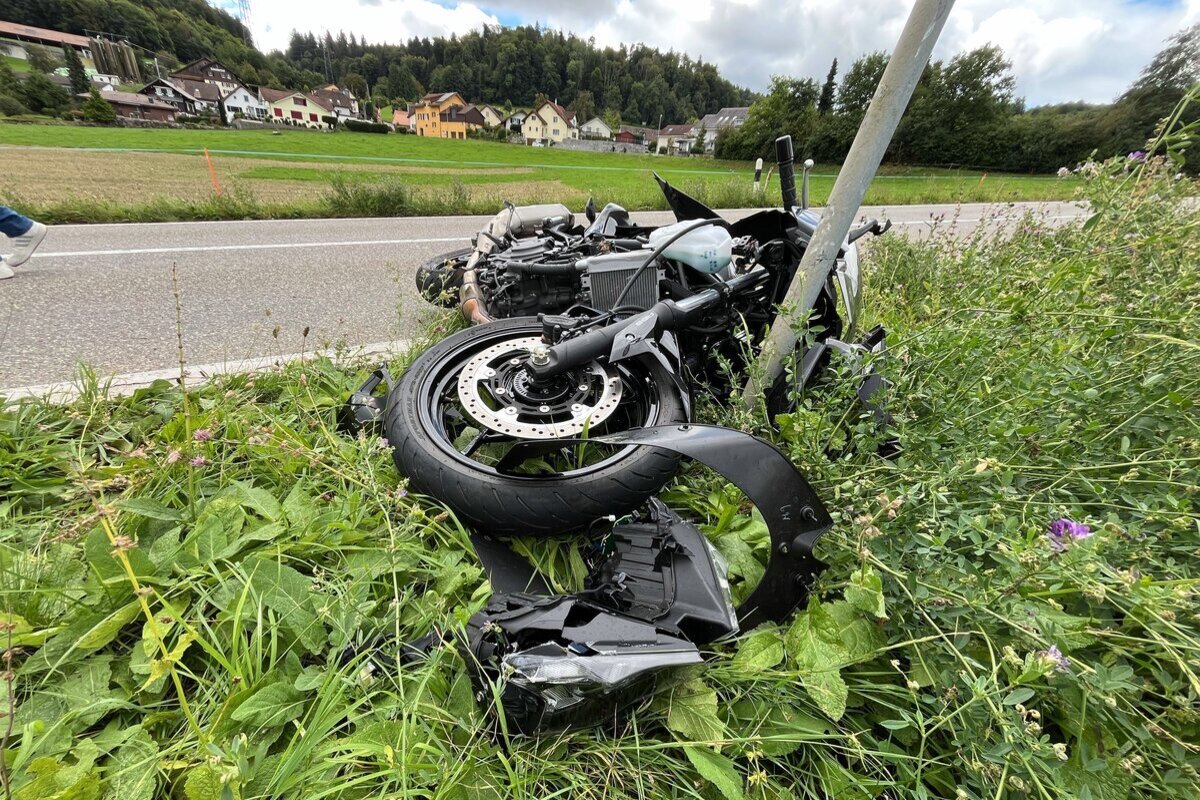 Das Motorrad prallte gegen einen Baum (Bildquelle: Kantonspolizei Aargau)