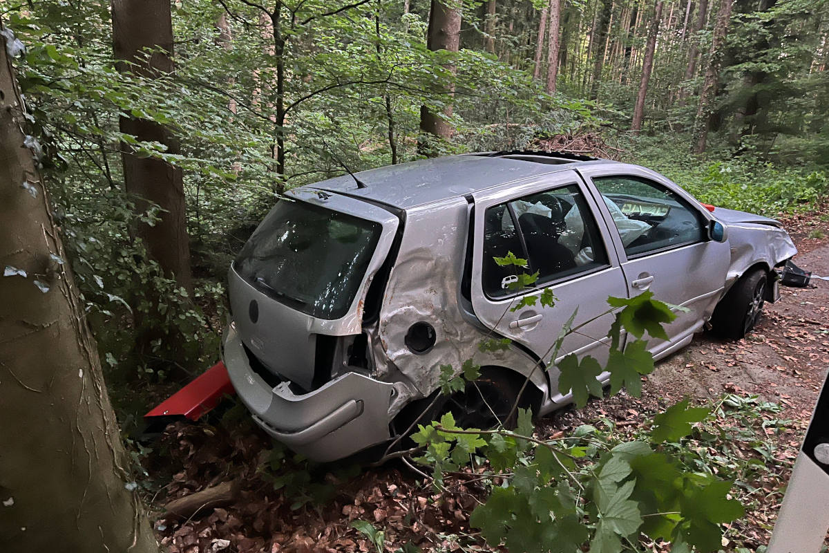 Der 22-jährige Autofahrer war kurz vor 5 Uhr auf der Dattenhubstrasse in Richtung Dattenhub unterwegs. Gegenüber den Einsatzkräften der Kantonspolizei Thurgau gab er an, nach der Rechtskurve einem Tier ausgewichen und deshalb über die Gegenfahrbahn geraten zu sein. Dort prallte das Fahrzeug in eine Böschung, schleuderte zurück auf die Fahrbahn und kollidierte rechts mit zwei Bäumen und einem Abfallkübel. Das Auto kam am Waldrand zum Stillstand.