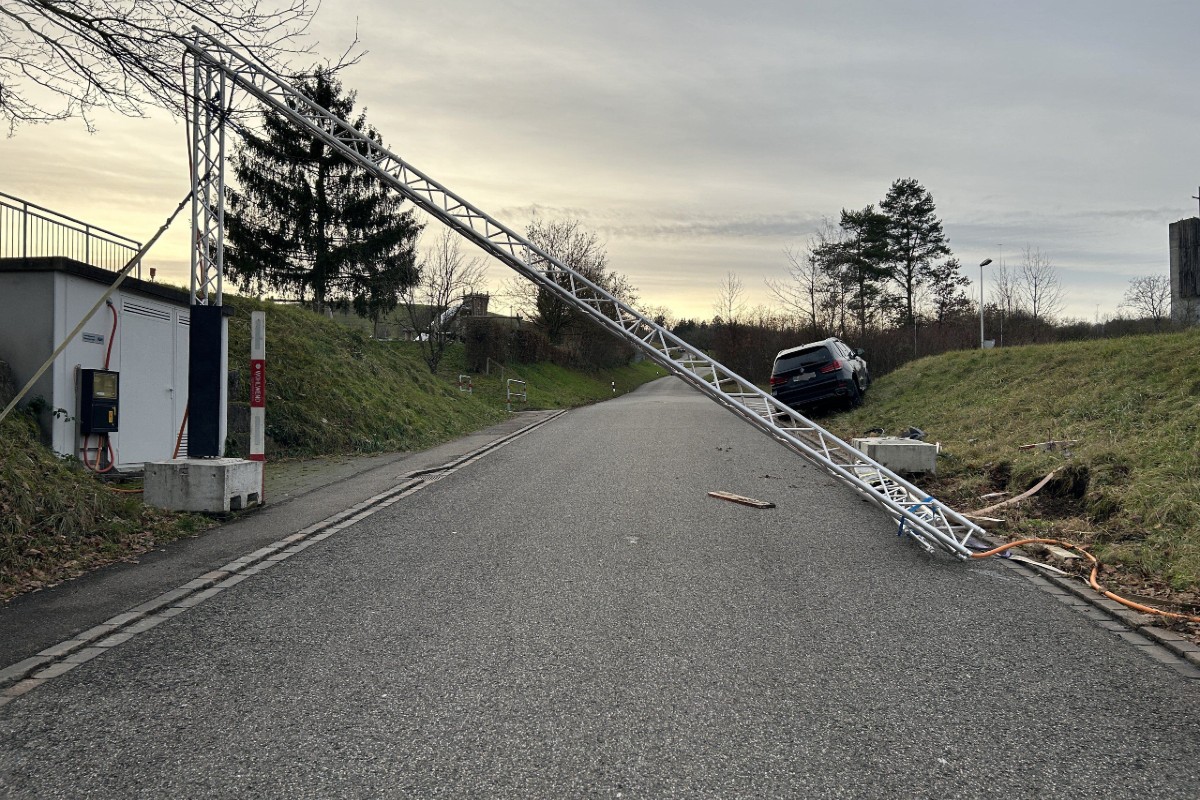 Kabelüberführung und verschob diesen meterweit. Dadurch stürzte das Tragwerk zusammen und blieb auf der Strasse liegen.