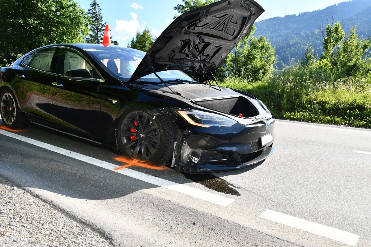 Nach rund 47 Meter kam der Tesla schliesslich auf der Fahrbahn zum Stehen. Am