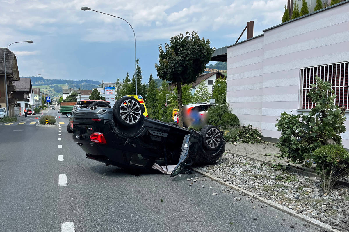 Autofahrerin bei Selbstunfall mit Fahrzeug überschlagen und verletzt (Bildquelle: Luzerner Polizei)