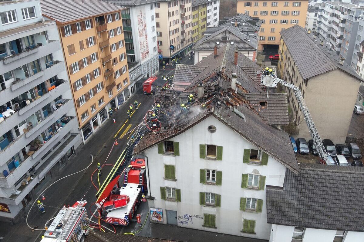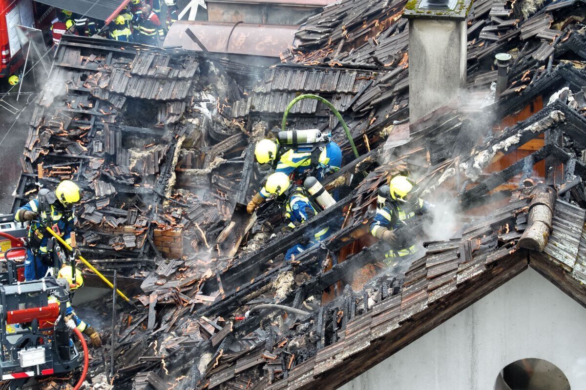 Die Löscharbeiten im Dachstock dauerten bis nach dem Mittag. Zur Unterstützung kam eine Feuerwehrdrohne mit Wärmebildkamera zum Einsatz, mit deren Hilfe Glutnester lokalisiert und gezielt gelöscht werden konnten.