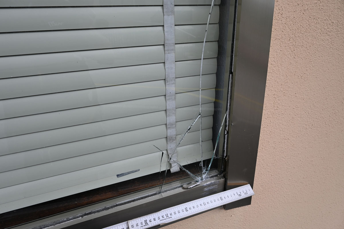 In Mauren wurde bei einem Wendemanöver ein Schaufenster beschädigt (Bildquelle: Landespolizei Fürstentum Liechtenstein)