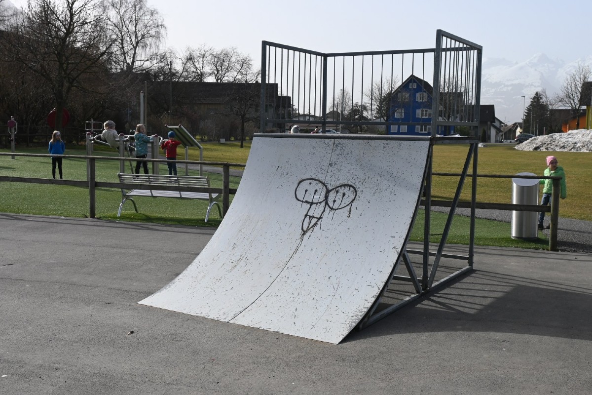 Eine unbekannte Täterschaft beschmierte mittels unbekannter Flüssigkeit, drei Skateboard Rampen beim Spielplatz ‘Weiherring’. Hierbei wurde jeweils der Schriftzug ‘Boyz’ sowie ein Penis angebracht.