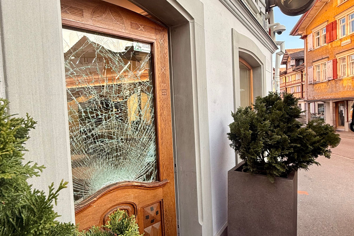An der Eingangstüre sowie im Inneren des Verkaufsladens entstand beträchtlicher Sachschaden.
