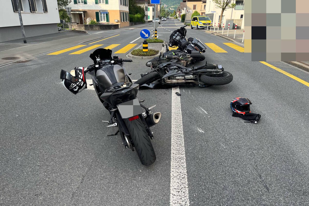 In Sevelen fuhren drei Motorradfahrer im Alter von 41, 20 und 21 Jahren in genannter Reihenfolge hintereinander auf der Bahnhofstrasse Richtung Autobahnanschlusswerk. Der 41-Jährige hielt vor einem Fussgängerstreifen an, um Passanten den Vortritt zu gewähren. Der nachfolgende 20-Jährige hielt sein Motorrad ebenfalls ein.