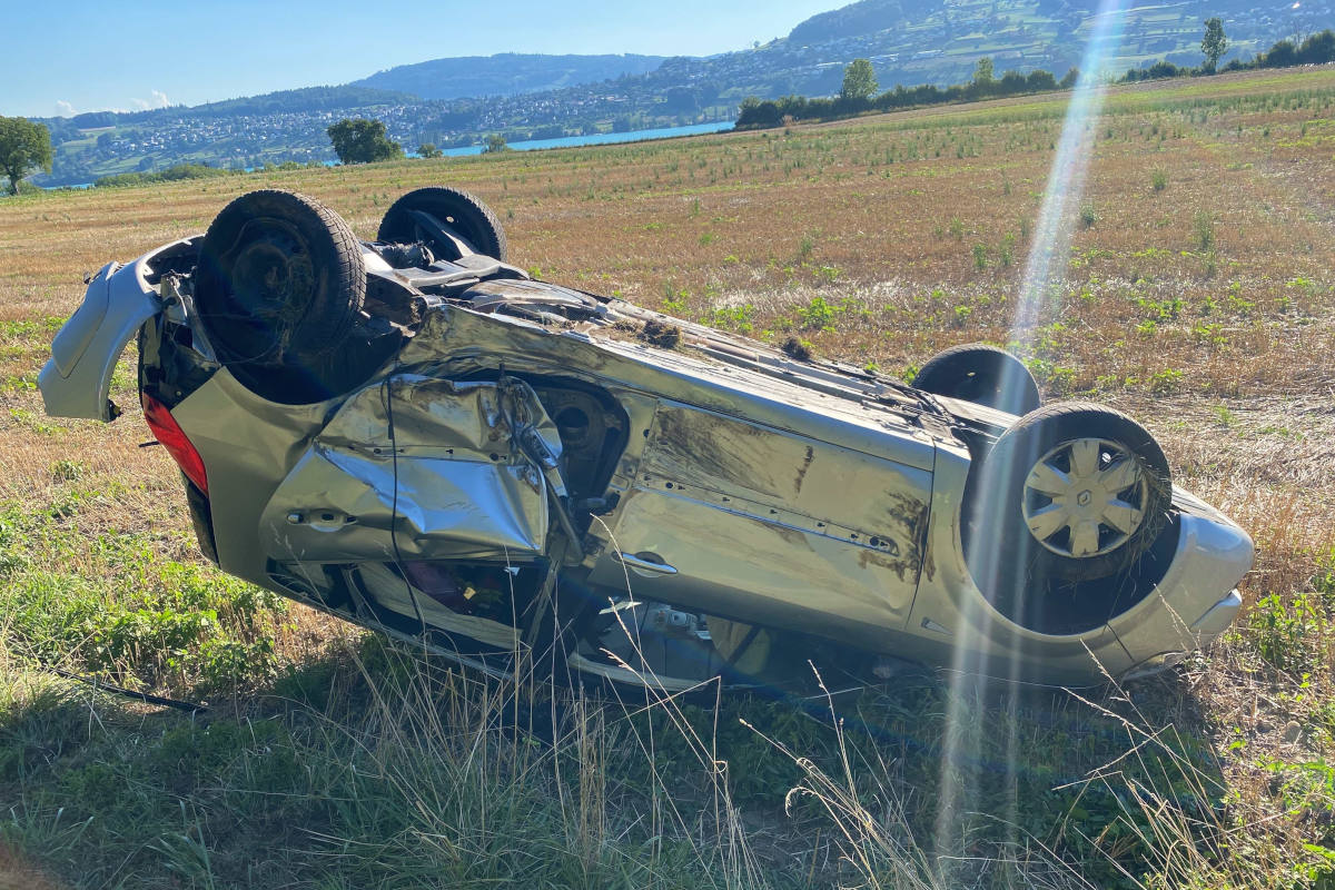 Der Unfall ereignete sich am Dienstag, 9. August 2022, um 17:50 Uhr auf der Aescherstrasse in Meisterschwanden. In einem Mercedes-Benz fuhr ein 21-jähriger Mann von Aesch kommend in Richtung Sarmenstorf. Kurz vor der Verzweigung ausserhalb von Meisterschwanden kam er auf die Gegenfahrbahn und stiess mit einem Renault zusammen, der vom Dorf herannahte. Als Folge davon überschlug sich der Renault und landete auf der angrenzenden Wiese auf dem Dach.