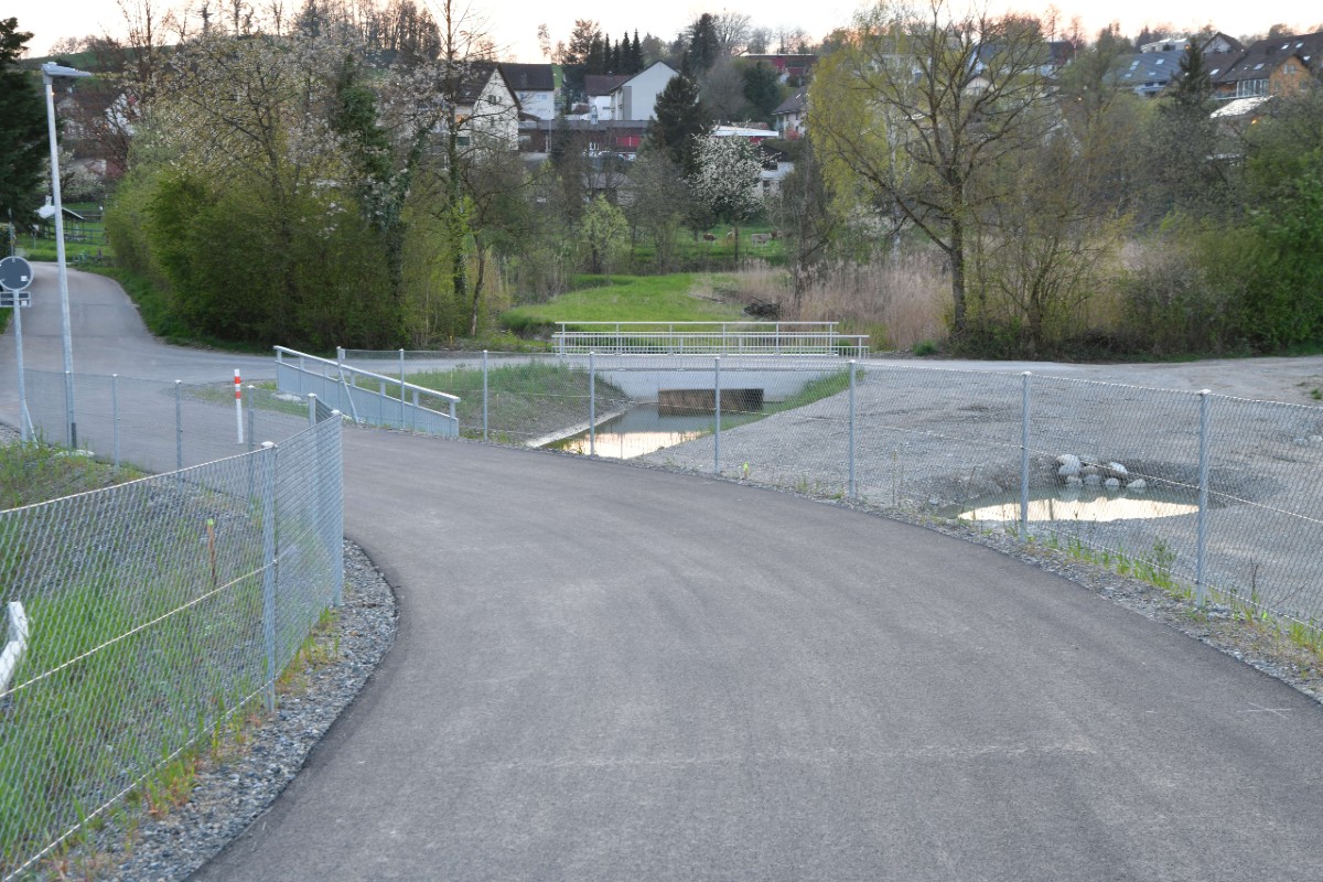 Fussweg die neue Umfahrungsstrasse. Auf der abfallenden