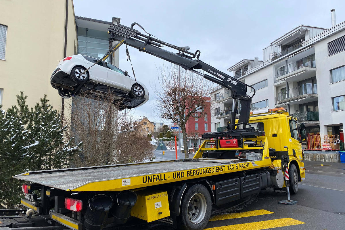 Das Unfallfahrzeug musste mit einem Kran geborgen und durch das Abschleppunternehmen abtransportiert werden.
