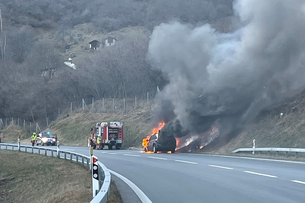 Auf der Nationalstrasse in Mesocco ist am Mittwochnachmittag ein Fahrzeug ausgebrannt. Die Nationalstrasse war deshalb gesperrt.