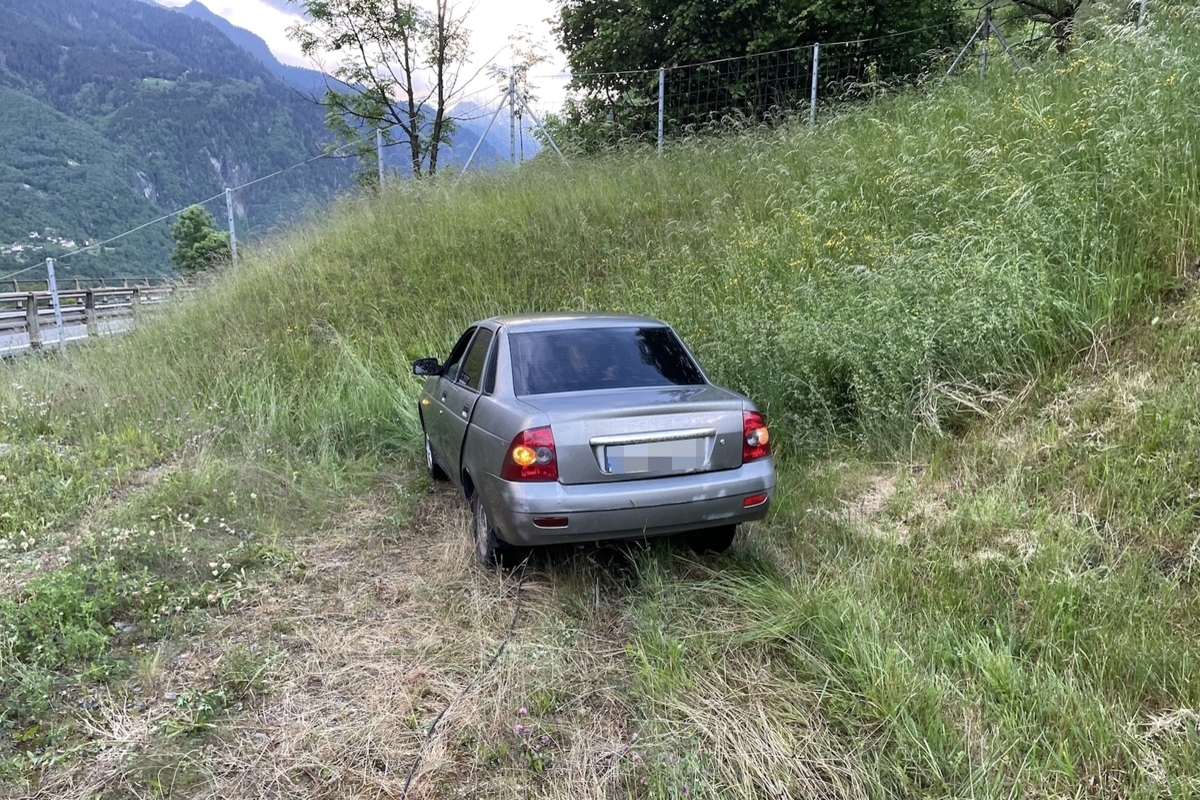 Am Dienstag um 19.45 Uhr meldete ein 32-jähriger Ukrainer über eine Notrufsäule der Kantonspolizei Graubünden eine Panne seines Autos, er hatte es am selben Tag in Chur gekauft, auf der Autostrasse A13 bei Mesocco. Auf der Talfahrt von San Bernardino in Richtung Bellinzona bekam er aufgrund der vorne praktisch wirkungslosen Bremsanlage Probleme und steuerte das Auto neben die Strasse auf eine ansteigende Wiese, um es so zu stoppen.