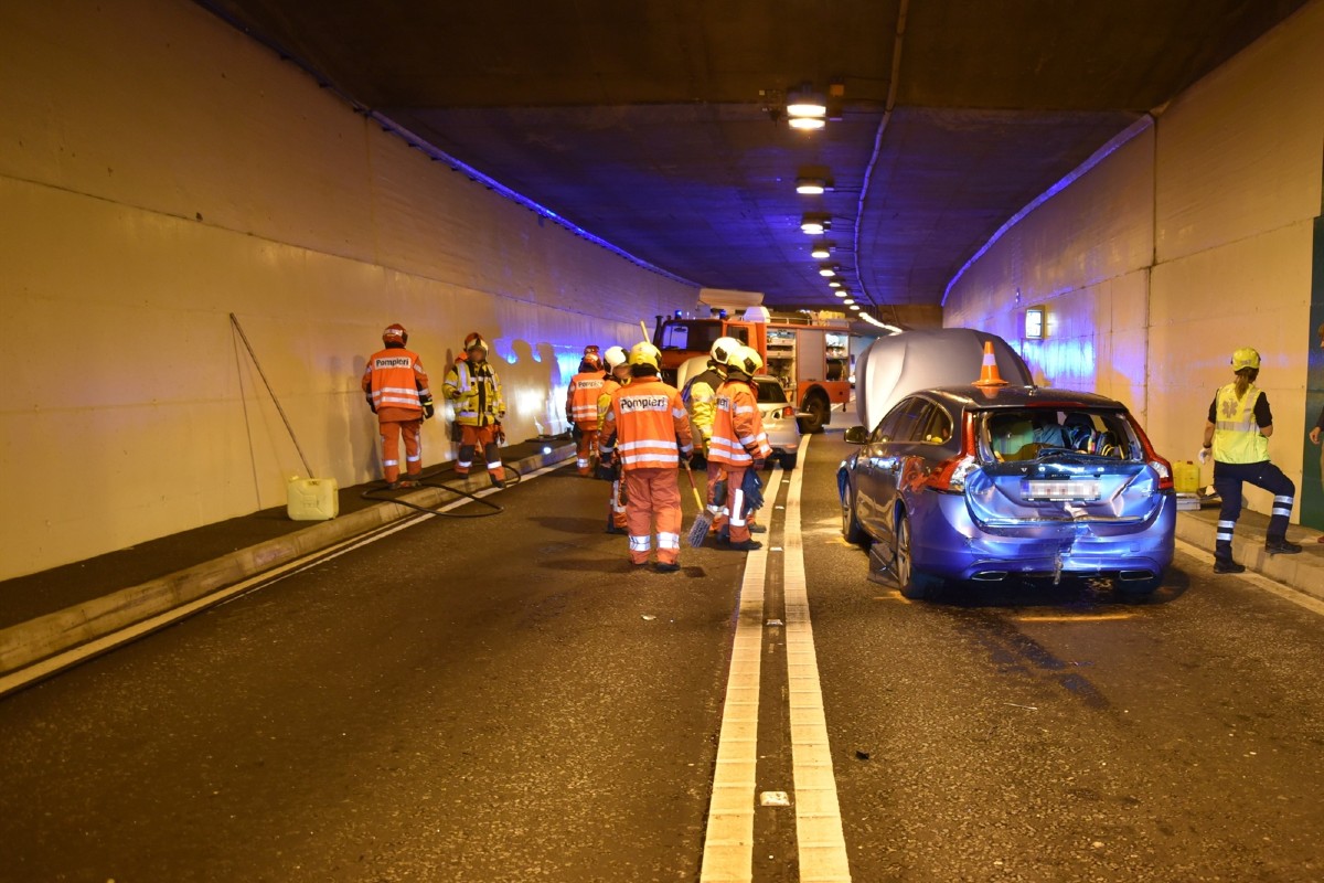 Ein in der Schweiz immatrikulierter Personenwagen sowie ein in Belgien immatrikulierter Personenwagen fuhren zur gleichen Zeit von Norden in Richtung Süden. Aufgrund der Rauchentwicklung im Landrüfetunnel stoppten die zwei Personenwagen.